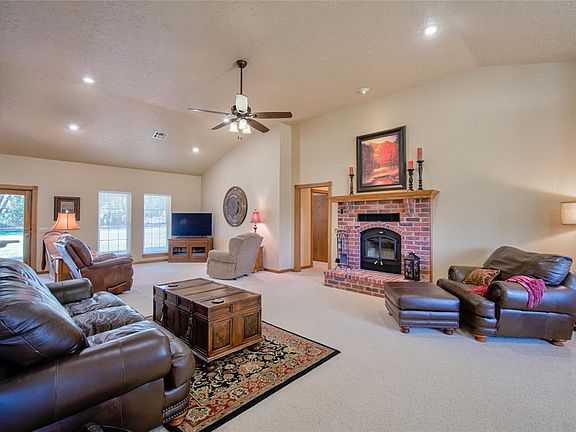 Imagine coming home to your own slice of paradise! This incredible home features 3 bedrooms, 2 bathrooms, plus a bonus room and rests on an acre cul-de-sac lot in the quiet and peaceful neighborhood of Windy Ridge Estates. Meticulously cared for and well-maintained, this bright and breezy open floor plan invites family and friends to gather, with two dining areas, a large living room with an amazing wood-burning fireplace and brick hearth and plenty of windows. The spacious kitchen features granite countertops, stainless appliances and tons of storage with pull-out drawers in every cabinet, with a breakfast bar that opens to the living, perfect for entertaining. Primary suite features a private bath with walk-in shower and Jacuzzi tub, and the walk-in closet is also a Saferoom/Storm Shelter! Two additional bedrooms and an extra bathroom make plenty of room for family and guests, with a bonus room upstairs as well. There are so many extras in this home, we can’t list them all here, so we uploaded them for you to review, but here are a few of our favorites: CLASS IV Roof (big savings on insurance!), whole-home water softener and a Reverse Osmosis (RO) system for the sink and fridge ice maker, 10-zone water sprinkler system, wifi garage door openers, fiber internet, 3’ doorways for easy accessibility, and so many more! PLUS, this home also features a 30x40 insulated steel shop with a 220vac outlet and a 12X16’ rollup door, perfect for projects, work or hobbies, with a fully-insulated three-car garage as well. All of this rests on a large, one-acre lot that not only offers peace and privacy, but stunning sunrises and starry nights where you can gather around a fire pit with family and friends and actually be able to see the night sky! This is the perfect place to call home!