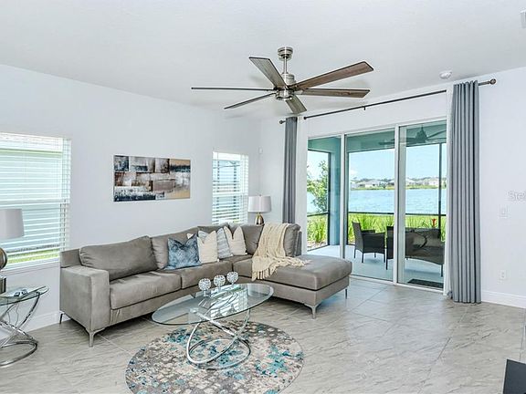 RESORT STYLE LIVING AT ITS BEST - Move in ready quality constructed smart home built with energy saving and luxury features, award-winning design, quality kitchen, luxury baths. Community amenities across the street from this beautiful home for easy access include the recreation center complete with a state of the art fitness center, swimming pool, spa, picnic area with grills, 4 pickle ball courts, doggy park and walking trails. Radiant barrier in the roof, upgraded appliances, cabinets and hardware. Insulated garage door, screened lanai, high ceilings and upgraded porcelain tiles. Spacious 2 car garage, beautiful screened lanai overlooking the lake with a perfect setting to enjoy the wonderful wild life and Florida living. No need to wait for construction, No CDD, don't wait too see this lovely home today. A must see!