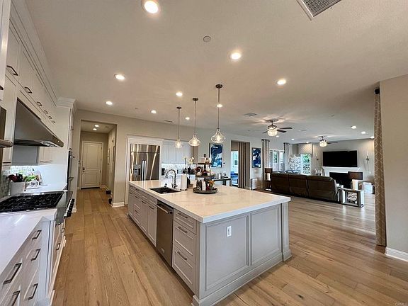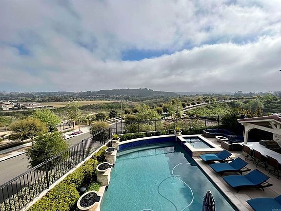 Live your elevated life in true luxury! Tucked inside the gated Terraces of Robertson Ranch, on a prime corner lot in a quiet culdesac, you'll find this near-new home with extensively upgraded interior & exterior, showcasing today's cutting-edge style with on-trend living spaces. A neutral palette, including White Oak flooring (no carpet throughout), a beautifully appointed kitchen with butler's pantry & tremendous walk-in pantry, private/luxurious primary suite, four additional roomy en-suite bedrooms, an upstairs media room, and a peaceful courtyard round out the floorplan (see Documents for downloadable floorplan). Spectacular UNOBSTRUCTED views of blue skies, green hills, & Sunsets from living spaces, loggia, backyard, primary suite & lanai. Fabulous backyard features Solar-heated saltwater pool & spa, pebble-tech, waterfalls & fire features, outdoor kitchen and NO neighbors behind. Energy efficient features include owned Solar, tankless hot-water, EE windows, zoned A/C, energy star appliances. Sonos surround-sound, wired for speakers, top of the line window treatments, customized throughout. Only three miles to legendary Carlsbad beaches. Easy I-5 access, excellent schools, world-class restaurants, mere minutes to Costco, Trader Joe's, Legoland. Private gated community offers five parks, walking trails, & community center.