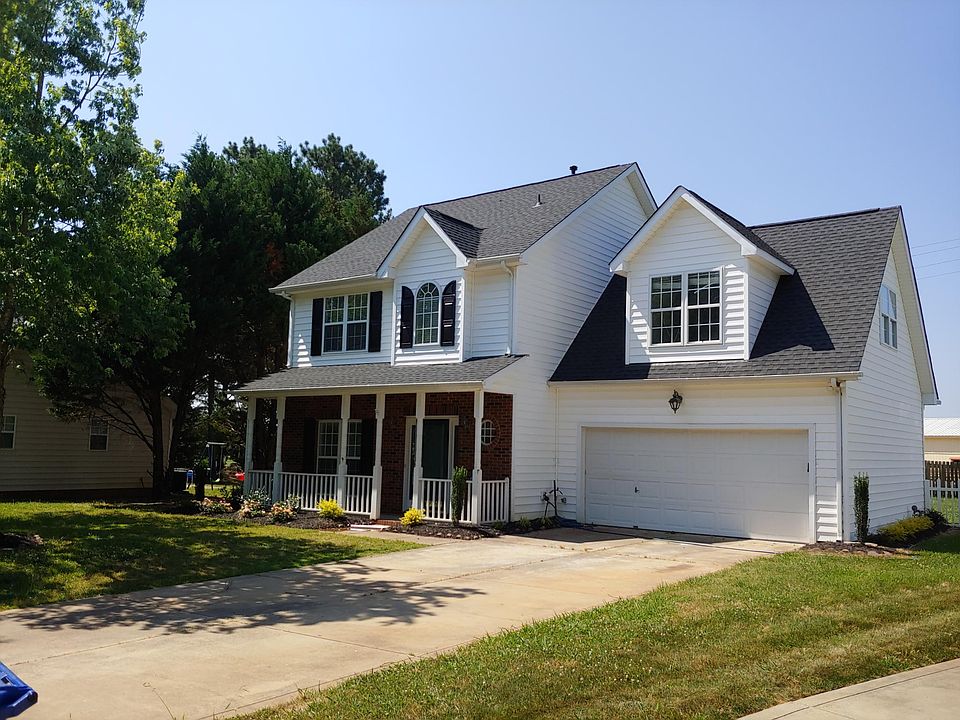 This is a three bedroom plus large bonus room (or fourth bedroom) on a large, private, cul-de-sac lot. The yard is beautifully fenced and very pet friendly! This home was newly remodeled in 2019 and features new gray tone granite counter-tops and brand new stainless steel appliances. It is located in a wonderful, close-knit community close to shopping. Easy access to highway 74 and Charlotte's I-485 outer beltway make this an ideal location for your commute. You will first notice an ideal yard space, both front and back with the backyard surrounded by a white picket fence. A large two car garage with built in work-space and a 10' by 16' shed give you plenty of options. Enter into the home on new hardwood look flooring. The first floor features a living room with gas log fireplace, dining room, kitchen and guest bath. Your cozy kitchen features upgraded, brand new, appliances including flat, ceramic cook top, built in microwave, dishwasher, and side by side refrigerator with ice and water in the door. Tile flooring and an adjacent laundry closet complete the first floor. Upstairs is a large bonus room, two additional bedrooms and a full hallway bathroom. The master suite includes a tray ceiling, and a large walk-in closet with window. The master bath has ample natural light and features a whirlpool tub, separate shower and tile flooring. Look out over the backyard to large fields and grazing horses as well as a horse training facility. This beautiful scenery is rare so close to town. Two inch faux wood blinds throughout the home ensure your privacy. Visit our website at www.mgmcarolinas.com for more details. There is also an option to buy this lovely home. Pets are conditional. No dangerous breeds. Absolutely NO SMOKING. Smokers need not apply. One year minimum lease term; Option to buy available