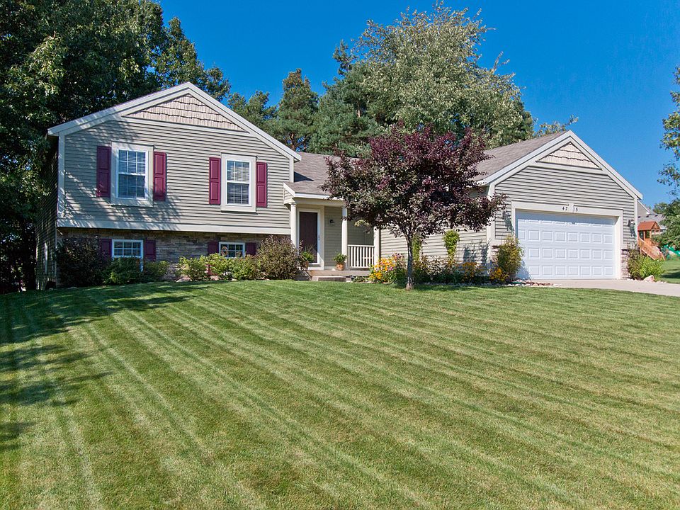 Beautiful and spacious Rockford home in sought after Hidden Highland neighborhood on a quiet, kid friendly, no outlet private street. This home still shows new, featuring an open main floor living area with vaulted ceiling. The foyer is welcoming as you walk in to your new home on the main floor leading to the multi-level layout. Enjoy cooking in the chef friendly kitchen with plenty of counter space, cabinets, and a food pantry. The surrounding bar-height counter brings the kitchen and dining room together for perfect mingling space and room for large gatherings. Remaining main floor boasts a large living room with large windows looking out into the park-like backyard full of mature oak and red pine trees. Upstairs has a large master bedroom with double closets and master bath. Two additional bedrooms and a full bath complete the second level. Lower level is completely finished with a large family room with wired surround sound capability and cabinet/counter space for crafting or sports display. An additional bedroom and full bath complete the lower level. Basement level is large as well with a spacious laundry room (partially finished), plenty of storage area and an additional unfinished room perfect for that future man cave. The lot is nicely kept with impressive landscaping mixed with wild features of mature trees and perennial flowering plants. The park-like setting in the backyard leaves to the imagination of HGTV influenced possibilities. Nice partially covered deck off sliders from the dining room and a big patio off sliders from lower level family room. 10 x 12 ft shed hidden in the woods gives more enclosed storage for your tools, gadgets, and yard machines. Very peaceful setting full of nature sounds and views. Additional 50 feet of adjacent common space (drainage easement) adds to the open yard space just for you and your family. This neighborhood bounds with family activity and friendly waves from your neighbors. Sidewalks allow kids to ride bikes and offer long strolls for the family. A true Hidden gem right here in the best school district in the West Michigan region. Please call Greg to arrange a showing, 616-706-6158.