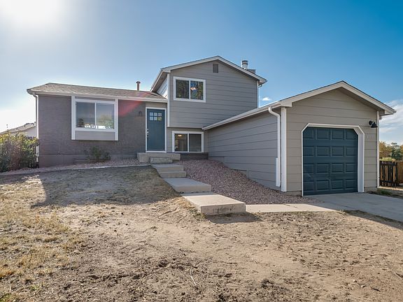 Beautifully updated 4-Level home in quiet cul-de-sac welcomes you with impressive landscaping. Step inside to find an open & roomy living room with beautiful custom paint. Continue over to the walk-out dining area that provides a great space for family dinners. The impressively updated kitchen is perfect for the aspiring chef in your family. Kitchen features brand new stainless appliances, white shaker cabinets with brush nickle handles and custom glass subway tiled back-splash. Upstairs you have two well appointed bedrooms and a roomy full bath. Spacious master bedroom features a roomy walk-in closet and adjoins with upper level full bath. Upper level full bath features custom tile work throughout. Lower level features a roomy family room with gorgeous wood burning fireplace. Lower level family room as garage access. Lower level also features an additional bathroom with custom tile work throughout. Third bedroom sits convenient to bathroom. Travel down to the basement to find a large 2nd family room space with great natural light. Spacious laundry/mechanical room completes the basement level. Home features custom paint and brand new carpet throughout, custom built railing, stylish light fixtures and more. Out back you have a nice size wood deck and large fenced backyard to enjoy. Close to schools, parks, shopping and more. Home is conveniently located near Powers, just minutes away from Peterson AFB & Ft Carson. Welcome home today!