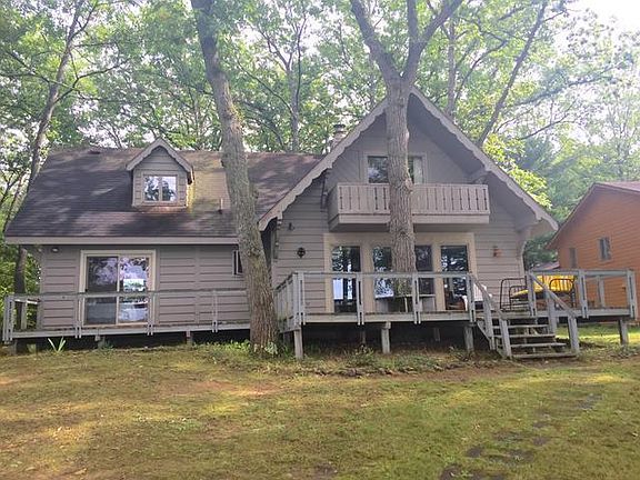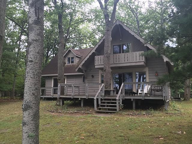 It's all about location! PRIME Lake Lancelot waterfront with 70ft of level sandy shoreline. Includes beach and dock. ALL NEW ROOF just installed 10/2017. Great opportunity to make this prime waterfront your home. Home has a solid structure, spacious, but will need some TLC and updating. Great rental or for investor flip. Fabulous Level sandy shoreline with 70ft on Lake Lancelot, beach, and fire pit. Chalet style with large natural log fireplace, roomy for dining and kitchen. 4 generous bedrooms, and 2 full baths. 2 bedrooms and full bath upper level and storage closet. Nice shaded lot, detached 2-car garage. Ownership provides access to 18 hole championship golf course , pro shop, restaurant/pub, indoor heated pool, exercise center, tennis/bocce ball courts, chalet/sledding hill, walking trails, activity bldg, access to 2 all sports lakes and 15 beach clubs.