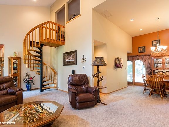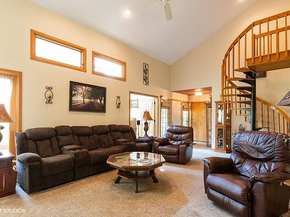 Character and charm overflows in this 2046 Sq-Ft, 3 bedroom, 2 full bath lofted ranch. The 2.4 acres of manicured property is the perfect setting for this delightful and treasured home. Architectural details include high ceilings, large and well placed windows specifically designed to bring in light, air and the vivid outdoor views. A spiral staircase winds its way up to the only room on the upper level, the 16 x 12 loft space. The main level has all 3 bedrooms, the big living room, the bright atrium with skylights, the large entry foyer, the brilliant kitchen with quartz countertops, open dining room, updated Master Bath with jet tub and quartz vanity top, the Main bath is also updated with a beautiful tile shower and a quartz vanity top, and the large laundry room with cabinets and countertop space to spare. Large 26 x 24 two car garage with an extra 12 x 13 storage nook off to the side (780 Sq-Ft garage). Exceptional landscaping and ambiance outside emphasized by the stamped concrete sidewalk, the paver stone paths, the lovely trees and woods, a stone fire pit courtyard located in the fenced-in backyard, a very nice 12 x 14 utility shed, a back patio with pergola. Public Sewer and Well Water. Over $80,000 invested in the past 10 years plus 2017 roof and skylights, new carpet and water softener recently installed. A Rare Beauty. Showings require preapproval letter from buyer prior to viewing. Please email to Charles.Hargrove@frontier.com Contact Charles at 608-295-3636 to schedule a viewing. WILL PAY 2% TO BUYERS AGENT.