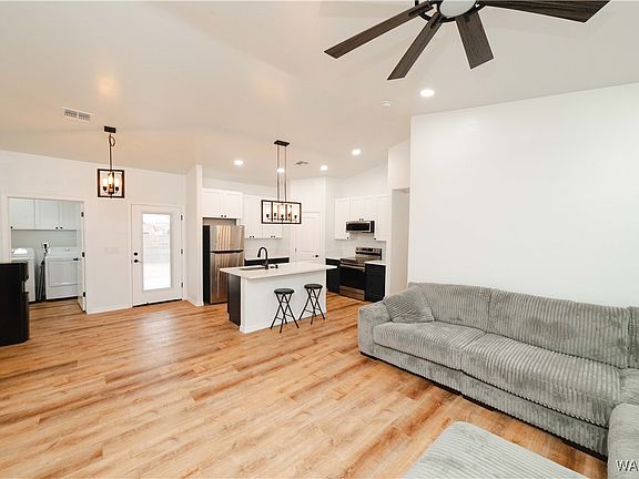 This stunning, like new all-electric home in Kingman offers 1,250 square feet of thoughtfully designed modern living space, perfect for those seeking both comfort and style. This home welcomes you with a beautifully landscaped front yard that adds curb appeal and sets the tone for the rest of the property. Step inside to find an open and inviting floor plan, featuring a spacious kitchen with a large island that s ideal for meal prep, entertaining, or casual dining. This kitchen is complemented by sleek granite countertops, custom tile showers, and high-quality stainless steel appliances, offering both functionality and elegance. Every detail in this home has been meticulously crafted with premium finishes, including durable vinyl plank flooring throughout, stylish modern light fixtures, and carefully chosen materials that create a warm, welcoming atmosphere. The spacious living areas are bathed in natural light, making the home feel airy and bright, while the neutral tones provide a versatile backdrop for any style of d cor. In addition to the beautiful interiors, this home includes a large 2-car garage, providing ample space for parking and storage. Situated on a generous 60x150 corner lot, the property offers plenty of outdoor space for relaxation, gardening, or additional customization. Whether you're enjoying a quiet evening at home or entertaining guests, this all-electric, is designed to meet your needs with comfort and style.