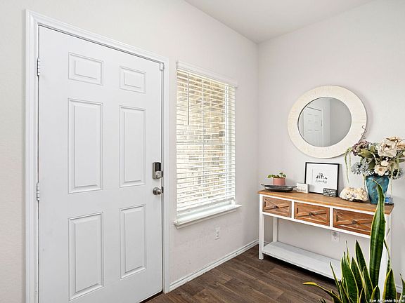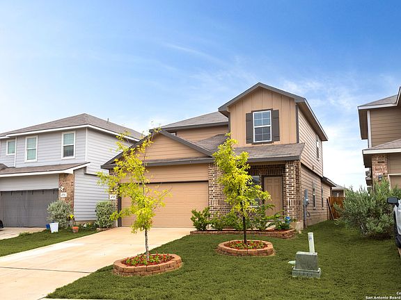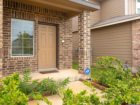 This four Bedroom, 2 1/2 Bath house is ready for you to move into. Please take note of the following features: Outdoor Area:- Enjoy a flagstone patio has a grilling pad, outdoor lights, and poles for hanging an overhead shade tarp.- Stay cool under the covered portion of the patio with the installed outdoor ceiling fan featuring an LED light.- A dedicated stone pad is available for your hose, along with stone landscaping added around walkways and trees.- Convenient hanging hose attachment is also provided. Interior:- The garage walls have been freshly painted and an upgraded LED light has been installed for better visibility.- A Chamberlain Garage Door Opener with Wi-Fi offers modern convenience.- Experience the benefits of an A.O. Smith Whole House Water Filtration and Softener from Alamo Water Softeners, fully owned and not rented.- Feel safe and secure with the ADT Smart Home Security system controlling the video doorbell, front door lock, garage door, and outlets via the ADT app, including a motion detector and a heat-sensing fire alarm on the first floor.- The kitchen is equipped with a GE Microwave above the stove and a Samsung side-by-side refrigerator.- Enjoy modern convenience with two USB outlets installed on the kitchen island and additional storage space with shelves in the understairs area.- Stay comfortable with a ceiling fan in the living room and an elegant chandelier in the dining area.- The primary bathroom is upgraded with a double-head shower head featuring a detachable handle.- Additional storage space is available with flooring added in two attic areas.