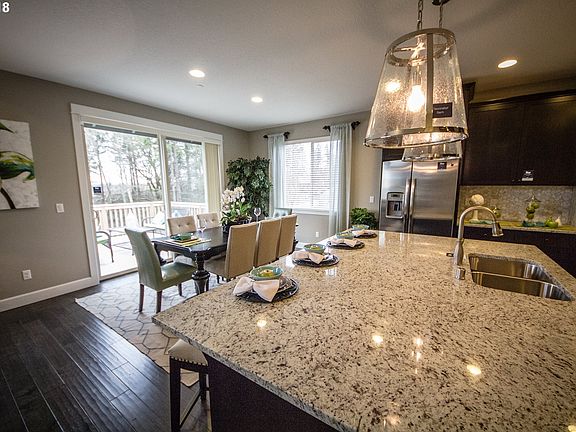 Dramatic high ceilings with tall windows backing up to treed greenspace and walking trail. Vaulted Great Room open to kitchen with enormous island for the entertainer! Extensive Laminate Floors, tiled shower, soak tub and so much more! Luxurious living on one level plus daylight basement w/2 additional bedrooms and family room.