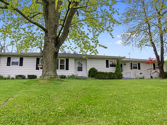 SHOWINGS START SATURDAY MAY 6th. Take a look at this wonderful RANCH situated on 1.47 acres in the West Liberty School District. This lovely home features beautifully landscaped grounds, numerous pine trees, hardwoods and many perennials. Outside you will also find two (2) storage sheds (12'x20' & 8'x10') and a paved driveway. You enter into a large living room which then leads to the three (3) first floor bedrooms and a full bath with a double vanity adjacent. The kitchen features oak cabinetry with a large peninsula and opens to the quaint dining area complete with a Harmon pellet stove and sliding glass doors leading to the covered patio and additional shaded pergola. The main floor is 1462 sq.ft. The partially finished lower level (1049 sq.ft.) features a large family recreation area with an additional propane fireplace for entertaining. The basement also has a dedicated home office, a storage area and a room that is currently being used as a guest space. The basement also features three (3) electronic wall heaters that provide additional warmth. The 2-car garage includes an added bump out that provides a workshop. Some of the newer items include a BRAND NEW furnace & Central Air unit (May 2023), water filtration system (2021), water heater (2020), asphalt roof shingles (2014), LeafGuard Gutter System (2021), patio shade (2021), 500 gallon propane tank (Filled on 4/25/23) & Gorilla Garage coating in garage, patio & both front door step areas. Window curtains in 2 of the bedrooms do not convey. *Possession negotiable, A2A note.