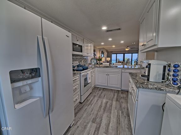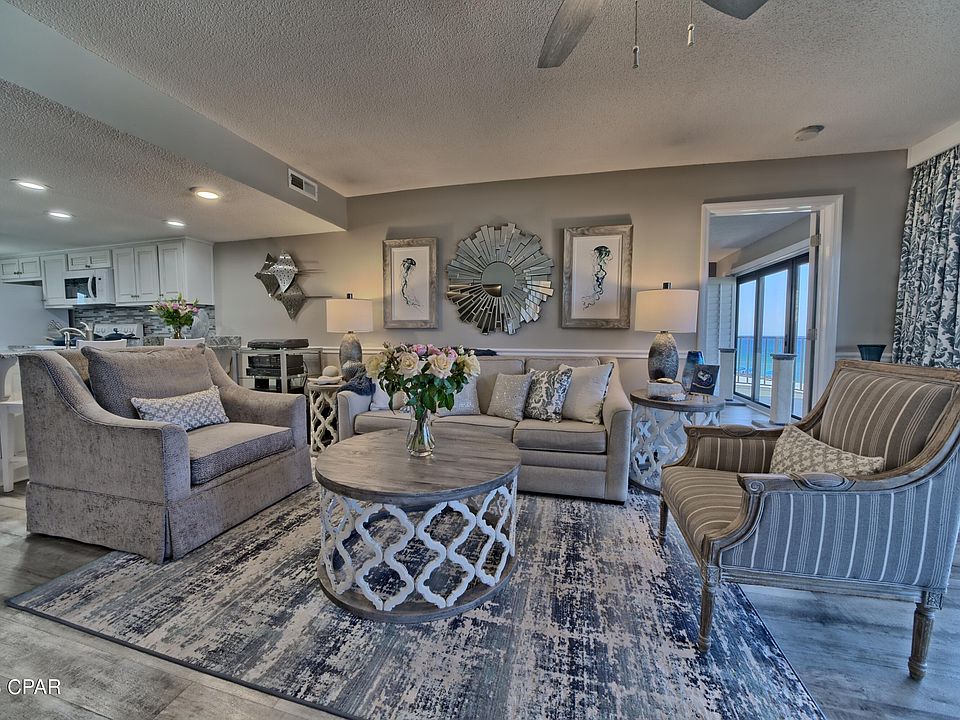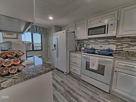 CURRENTLY UNDER CONTRACT, SELLER WILL CONSIDER BACKUP OFFERS. This is the only CORNER unit with a WRAPAROUND BALCONY on the market at The Commodore!!! Rental projections are over $77,000. Step inside this stunning 3 bedroom, 3 bath corner unit at the highly sought after Commodore condo. Centrally located on the quiet east end of Thomas Drive, close to St. Andrews State park, local restaurants and shopping. One of the best perks of this condo is the two gulf front bedrooms, each with a private bathroom. The seller's outdid themselves with the upgrades, including granite countertops, new cabinets, tile backsplash and matching appliances in the kitchen. The guest bathroom has a beautiful soaking tub, tile backsplash on the walls, granite countertops, new cabinets and a custom chandelier. You will also notice the other two bathrooms have walk-in showers with tile backsplash, glass doors, new cabinets, granite countertops and beautiful lighting fixtures. New vinyl plank flooring throughout and freshly painted walls make this condo a must see! The water heater and HVAC was replaced in 2019 and all sliders and windows have been replaced. The wraparound porch offers expansive views of the emerald green water and sandy white beaches. This condo has a lock out suite with a separate entrance so you have the option to rent as multiple units. Call today for a private showing!