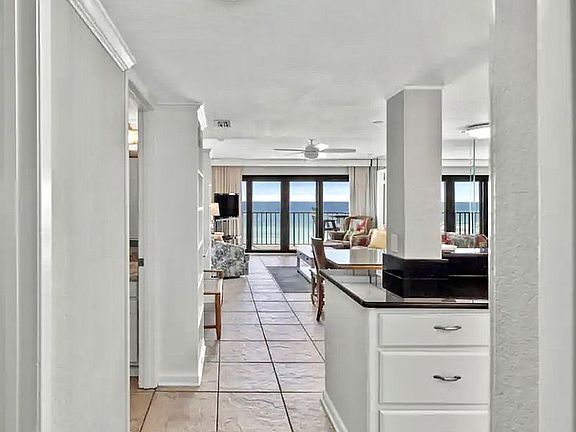 Will pay realtor commsion and first owed HOA. Huge corner unit with wrap around balcony. Turn key ready. Entire unit freshly painted. 2 large masters with balcony access and beach views. High end blackout curtains. All three bathrooms completely updated. Two king beds. Two queen beds. Sleeper sofa. Unit can sleep 10 guest. Has two main entries to unit. Outdoor storage closet for sandy items. All furniture included. Rents out easily, guest love this end of the beach and the privacy! Also, walking distance to St. Andrews state park. Patches bar and restaurant adjacent to parking lot.