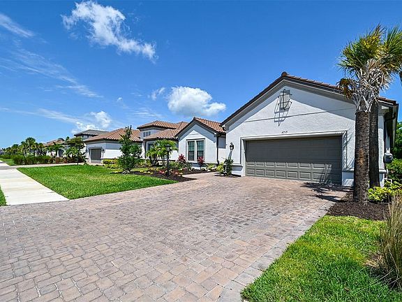 New Price for this beautiful home in the Esplanade at Azario Golf Community in Lakewood Ranch offers inspired resort-style living, giving you the sense that you are on vacation year-round. This community was centered around an idea of meaningful connections, resort-style amenities, and carefully chosen and planned programs to appeal to the mind, body, and spirit of all the residents. This most popular Pallazio floor is larger than most with an additional bedroom and den, extended lanai, and a tandem 3-car garage with an 8-foot extension on the driveway. Elevated even further with luxury finishes including Thermador appliances, cascading waterfall quartz countertops surrounded by custom kitchen solid wood cabinetry, tile throughout, decorative wall art throughout, Murphy bed in the den, screened lanai with a magnificent outdoor kitchen and private preserve views plus so much more. As a resident of Azario Esplande, you will have a full array of amenities to choose from including a heated resort-style pool, state-of-the-art fitness center with various classes, sports courts, a well-equipped Wellness Center featuring a spa manager, fitness and nutrition consultants and offering a full-service salon with massage, manicures, pedicures, and body treatments. In addition, the thoughtfully planned 15,000 SF Culinary Center will feature world-class culinary offerings, fine dining, wine tastings and cooking classes. Just a few steps from the pool, the Bahama Bar, has a full-service restaurant and bar with an inviting fire pit. And you cannot forget the 18-hole championship golf course winding its way through the community, highlighting the natural beauty of Azario available to the owners of this non-golf home as a pay to play option or purchase a membership. You have earned the right to live in this abundance of luxury!
