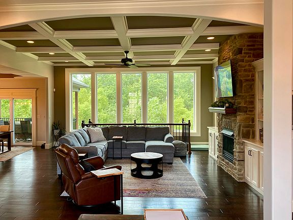 Stunning Atrium Ranch with finished lower level in Creek's Edge in Rockbridge School District. You will instantly fall in love with the gleaming wood floors, extra high ceilings with custom tray design; stone fireplace w/built-ins, wall of massive windows in living room, and formal dining room with beautiful trim work. Kitchen is a dream with HUGE granite breakfast bar, gas range, stainless steel appliances, and custom cabinetry with SECRET large pantry. Walkout to spacious covered deck. Main level master has a walk-in closet and private bathroom featuring jetted tub, walk in shower, and double vanities. Lower level has family room with wet bar. 5th bedroom could convert into media room; spacious storage area w/John Deere doors; relaxing patio with firepit and community pool to enjoy.