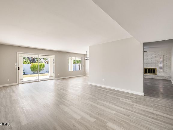 Freshly remodeled! This move-in ready Glendale home has been completely renovated from top to bottom with tasteful features & modern design elements throughout. The open living area boasts fresh paint, wood-look vinyl flooring, updated lighting, plenty of natural light, & a cozy brick fireplace. Chef's kitchen equipped with quartz countertops, white shaker cabinets, & stainless steel appliances. Both bedrooms have been updated with new carpet & lighting. Bathrooms include updated vanities with marble countertops & luxe tile showers/bathtubs. The backyard is complete with a covered patio & opportunity for customization. Also featured, fresh exterior paint, 2-car garage with epoxy flooring, RV gate, & NO HOA. Prime location with quick access to highways, schools, shopping, dining & more!