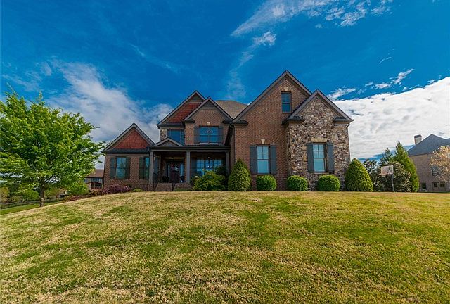 This exquisite 5 BED, 4 BA craftsman-style home has all the quiet allure of Grandview Estates Swim/Tennis. Much more to offer than new construction. New roof, 1.26 acre lot. Vast stone porch invites guests to dramatic entry, upgrades and HRDWDS throughout, coffered ceilings, great rm w/ built-ins, 3 FP, crown molding thru out. Chef's kitchen, grand keeping rm w/stone FP/built-ins. Media rm, study loft, master on main w/ 3rd FP opens to covered porch perfect for entertaining. Full Basement. Minutes to L. Lanier, Falcons Complex & great schools!