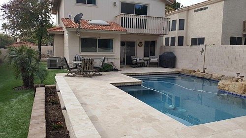 Beautifully updated home with resort style backyard and lots of privacy. The gourmet kitchen was remodeled in 2012 with granite counter tops, stainless steel appliances, new cabinets, fixtures and lighting. The kitchen looks out to the private backyard with newly finished pebble sheen pool, amazing travertine deck and new pool pump, filter all installed/updated in 2014. The large synthetic grassy area and landscaping was installed in 2015. All new windows and sliding doors were installed throughout in 2013, the wet bar was remodeled in 2012 and the master bath was redone in 2016. The AC was newly installed in 2014, as well as garage door opener, water heater and the exterior was painted. No detail has been overlooked. Home has been meticulously maintained and appointed.