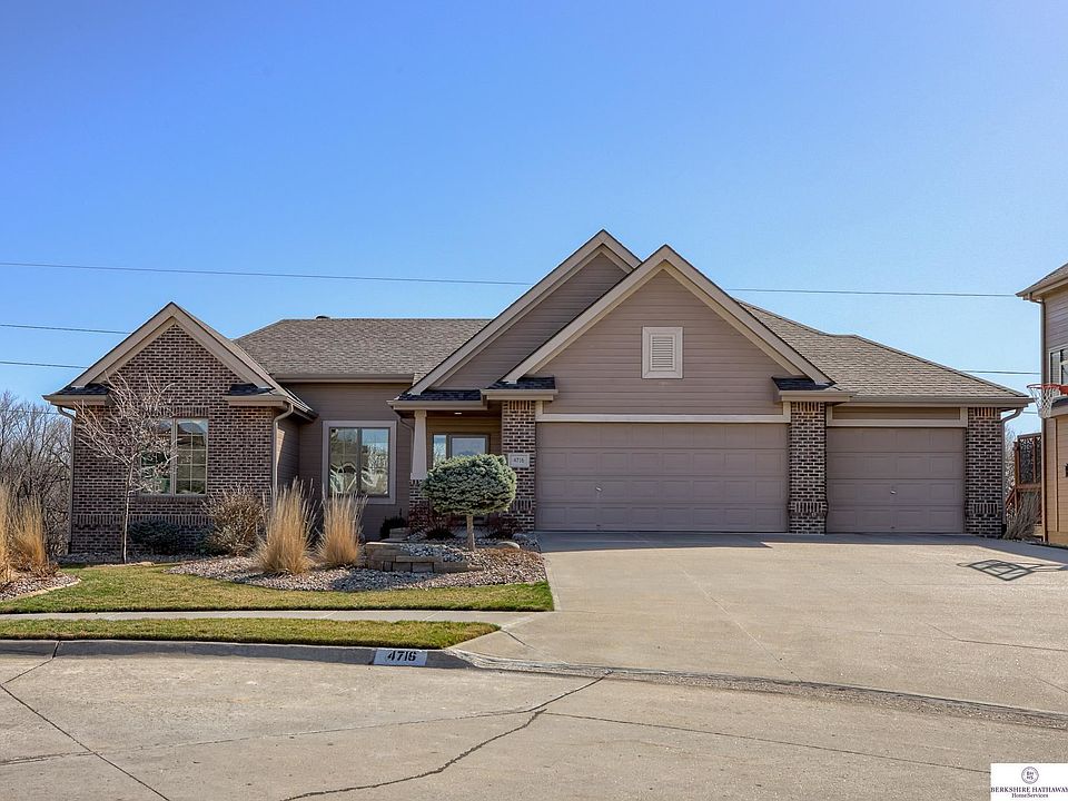 Immaculate Zero Entry walkout ranch on an amazing West-Facing lot backing to TREES in beautiful Lakewood Villages! Located in a partial cul-de-sac with flat deep driveway and lovely landscaping including bubble rock. Beautiful open floor plan features a Great Room with tall ceilings and stone corner gas fireplace open to spacious kitchen with batwing island, Black appliances, granite countertops and beautiful wood flooring. The split bedroom plan has a large primary suite with walk-in closet and tiled shower on one side and two other bedrooms with full bath on the other. The Amazing finished lower level has a 4th bedroom, ¾ bath, HUGE family room with lovely Wetbar and TONS of storage. All of this PLUS Low Taxes, a Main Floor Laundry, New Carpet and Pad, a Covered Deck overlooking a quiet wooded area, and just blocks to the elementary school and playground!