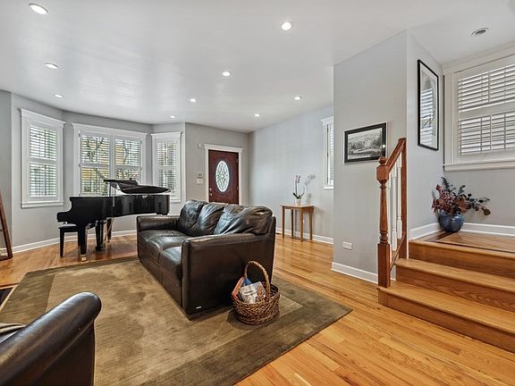 Beautiful and spacious home within Albany Park that checks all the boxes! Open floor plan with 3 levels of living space and three top floor bedrooms! Excellent natural light thanks to windows and skylights galore. Beautiful hardwood floors throughout the first and second floor levels with porcelain tile in lower level. Expansive first floor includes - living room with fireplace which expands into large dining room. Huge eat-in kitchen which is fully encased in windows includes - granite counters, rich cabinetry, stainless steel appliances, gorgeous tile backsplash and center island with granite overhang. French doors open to a wonderful private deck making this space perfect for entertaining. Top floor includes three bedrooms, guest bathroom and a generously sized primary suite with vaulted ceilings, dual vanities and private balcony. En-suite equipped with skylights, separate shower and whirlpool tub. Phenomenal lower level is an entertainers dream with rare 9' ceilings making this entire floor truly usable! Family room with fireplace, fantastic wet bar with granite, cabinets and wine fridge. Large Fourth bedroom currently being used as an office, another guest bathroom and laundry area complete this level. Recent updates in 2022 include - new tear off roof and hot water heater. Two zoned heating and cooling and two car garage. There is no other single family on the market like this! Amazing location near expressway, CTA, grocery stores, shops and restaurants.