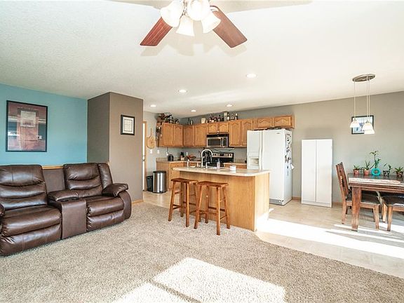 NE Ankeny Ranch home with over 2,300 Sq/Ft of finished living space. Quality lower level finish including family room, second refrigerator, 3/4 bath and oversized bedroom. Open floor plan design including sliders to the expanded deck with fenced in back yard. Center island kitchen including a side by side refrigerator. Master with private bath, first level laundry.