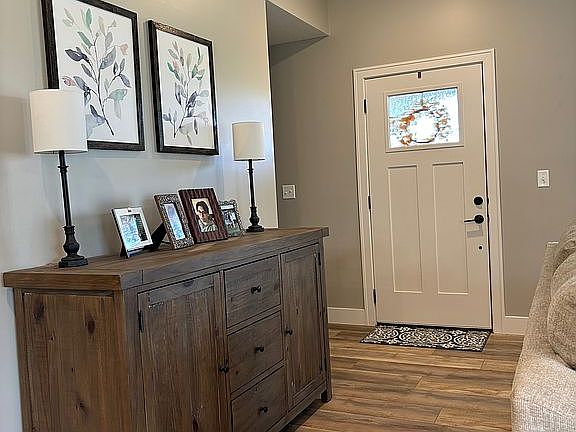 Welcome to your new home in the popular Irvine Acres neighborhood, home of Oliver Brown Elementary, in Pottawatomie County. The open floor plan, three spacious bedrooms, two baths, and walk-in closets and pantry provide plenty of room for entertaining, relaxation, and storage. The kitchen boasts stainless steel appliances, a farmhouse sink, granite countertops, and backsplash-to-ceiling tiled walls for a seamless look. The living room's linear electric fireplace is a cozy, contemporary addition to this modern farmhouse-inspired home. Floor coverings include easy to care for, waterproof vinyl wood planking, and carpeted bedrooms. Outdoor amenities include a covered front porch, covered patio, aluminum fence, professional landscaping, and sprinkler system.
