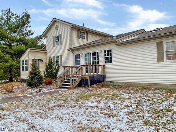 HARPERSFIELD TWP: 2 Acres, 3-4 bdrms (tandem 2 bdrms & a half bath on 2nd fl) 2 full baths on the 1st fl, bdrm 2 could be an office & the master bdrm has sliding doors going to a large rear deck. Large Living room has skylights and sliding doors to small deck. Huge kitchen with center island and plenty of counter space with cabinets and a separate eating area with skylights. Large pantry off the kitchen which goes down to the walk out door to basement. Basement has a furnace, well holding tanks, h w tank and the remaining of the home has crawl space. Front foyer and a separate mud room! Remodeled and addition 1995, 2 updated breaker boxes. Detached 3 car oversize garage with a propane furnace. 2nd floor not added into the sq. ft.
