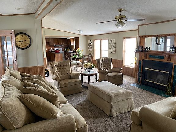 1998 double-wide mobile home; approx 2000 sq feet. 4 bedrooms, 3 bathrooms, living room with fireplace, family room, oversized master bedroom with large bathroom including a soaker tub, separate shower and huge walk in closet. South Village is a quiet, kid friendly neighborhood with convenient location to Lake Shawnee and Shopping. Lot rent is $330 which includes free water, sewer, trash pick up and use of the swimming pool, playground, tennis and basketball courts. This home is also located in the Auburn-Washburn (USD 437) school district!