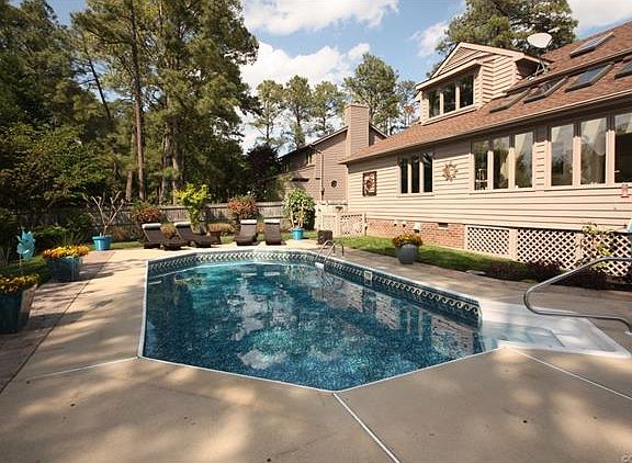 Stunning open concept contemporary home with abundant light from new Marvin windows flooding the interiors. Huge family room for large gatherings features a gas fireplace with blower and vaulted ceilings plus dining area. Renovated kitchen with granite countertops, ceramic tile backsplash and a double convection oven. You'll love the four season sunroom with operable skylights. Updated powder room. Gorgeous garden and pool views from the living areas and first floor master bedroom suite. Renovated luxury master bath and walk-in closet. Ideal home office area in the loft with cabinets and bookcases. Two equal size bedrooms with renovated bathroom. Amazing outdoor living with salt pool, gas firepit, fully equipped Tiki Hut including sink, refrigerator, and cable connection. Lush landscaping, minimal lawn maintenance, privacy fencing. Gas grill with custom cabinet with gas connection. Convenient to shopping, restaurants, and parks. Neutral interiors and immaculate. Move right in!