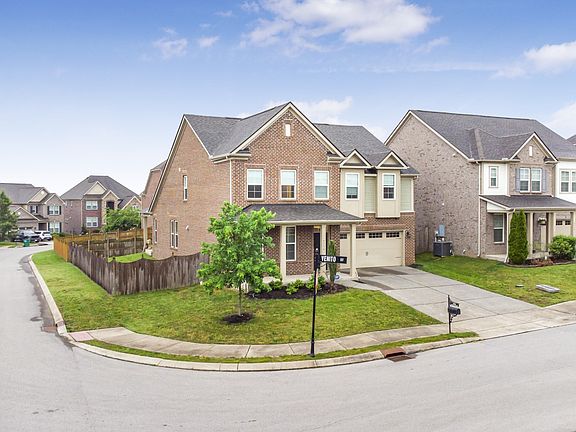 Welcome home to this spacious 4 bedroom 2 and half bathroom home on a corner lot in Tuscan Gardens! Open-concept living downstairs with wide plank hardwoods and stone fireplace. Beautiful kitchen includes gas stove and walk-in pantry. Master suite downstairs. Master bathroom includes double vanities, separate tub and shower. There are 2 primary bedroom closets. Upstairs includes a den and large storage space. New carpet and paint. Step out back to a covered patio and fenced backyard for privacy. Many smart features from cameras to light switches. Community has a club house, fitness center, pool and playground. Just 25 minutes from BNA