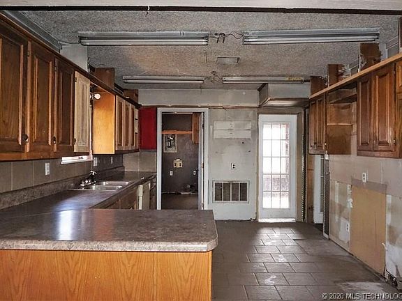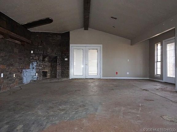 Enjoy country living in ranch style home northwest of Muldrow. Vaulted ceilings, dramatic stone wall and fireplace, and access to covered patio for outdoor entertainment and enjoyment. Kitchen with tile floor and loads of cabinet space for storage. Three roomy bedrooms and two full baths. Partial basement. Large workshop with two garage doors provides extras space for storage, wired for electric. This is a Fannie Mae Homepath property.