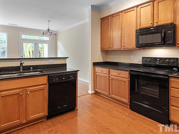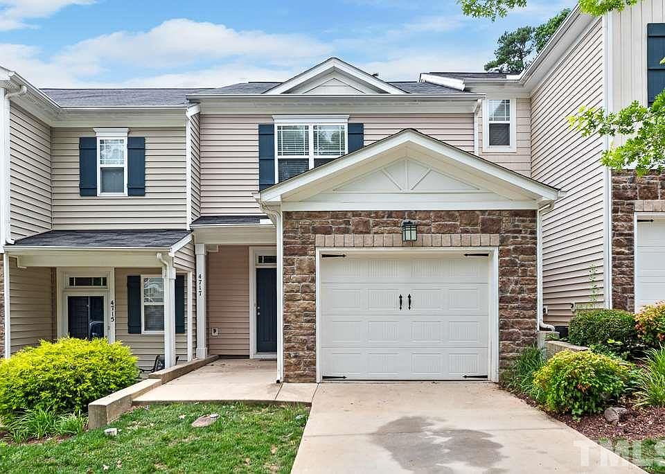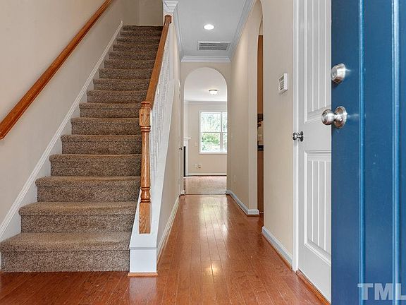 Lovely Stone front townhome, 3 BR, 2.5 Ba, 1 car garage features hardwoods throughout the lower level, tons of natural lights, arch door ways from foyers, spacious kitchen with granite counter tops ,42' cabinets, 1st floor w/ 2-piece crown molding & 9' ceilings and roomy owner's suite with vaulted ceilings, & bath w/ oval sinks. View out the back of beautiful landscaping. Minutes from I-440, NC State University, and downtown Raleigh. A MUST SEE!