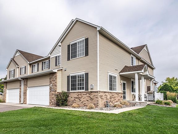 Don't miss this wonderful 2br/2ba END-UNIT TH in Inver Grove Heights! A bright & light-filled living room greets you featuring beautiful natural woodwork! Semi-open concept living, dining & kitchen boasts tall ceilings creating even more of an open feel. Living room has a cozy gas FR w/TV niche above. KIT is fully equipped w/plenty of counterspace, lots of cabinets, new d/w, breakfast bar & spacious pantry. There is also a 1/2 bath, small rear entry that accesses the garage & a coat/storage closet. Upstairs you'll enjoy tall ceilings throughout & a spacious hallway leading to the laundry/utility room with new furnace & AC! Also 2 BRs, full bath & loft/den upstairs! Loft/Den could be an office, playroom or converted to a 3rd BR! The primary BR is very roomy & has a walk-in closet + walk-thru access to spacious full bath w/double sinks & a linen closet! Wonderful attached garage w/opener & plenty of storage. Great residential area near parks, trails, Roberts St shopping/dining & more!