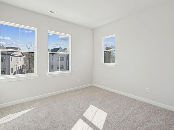 Welcome to your dream retreat, a stunning luxury townhome that perfectly blends elegance and comfort. This spacious residence features four thoughtfully designed bedrooms, including a convenient main floor suite with a full bathroom, ideal for guests or multi-generational living. As you enter, you're greeted by soaring 9-foot ceilings that create an open and airy ambiance throughout all three levels. The heart of the home is the expansive kitchen, boasting a large island perfect for entertaining and culinary adventures. High-end appliances and ample cabinetry make this space a chef's delight. Step through the 12-foot glass doors to your private balcony, where you can relax and unwind while taking in serene views of the natural tree area—a true oasis in the midst of urban life. The outdoor space also includes a storage closet off the private patio, providing practical convenience. Situated in a prime location, this townhome offers easy access to Crabtree Valley, downtown, RDU Airport, and major interstates. You'll be just minutes away from the upcoming Lenovo expansion, making it an ideal spot for both work and play. Experience luxury living at its finest in this exquisite townhome—your perfect sanctuary awaits!