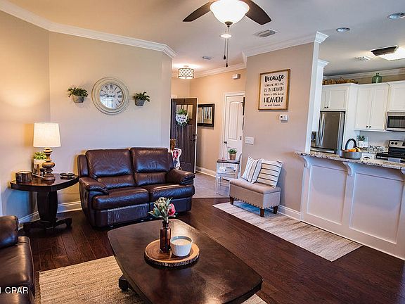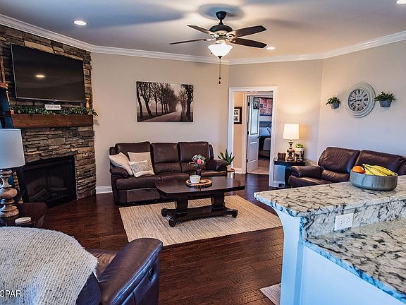 Fresh on the market in one of the hottest neighborhoods in Bay County!!! This 4 bedroom, 2 bath home was built by one of the premier local builders with all of the bells and whistles. The split floorplan features an open concept living area with hard surface flooring, crown molding a cozy fireplace and plenty of natural light. For the gourmet chef, the kitchen has loads of custom cabinet space, granite counter tops, stainless appliances and an eat in area. The main bedroom is quite large with a large bath featuring double vanities, garden tub, separate shower and huge walk in closet. The 3 remaining bedrooms are on the opposite end of home for privacy. The brick exterior is tough and durable!! The back patio overlooks a well manicured fenced back yard. Homes like this are on market