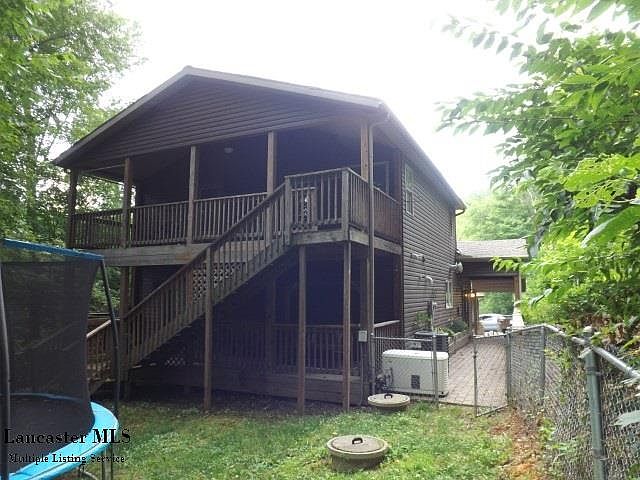 Nestled in a wooded setting is this 3 bedroom, 2 bath custom designed home. Cathedral ceilings in living room with propane fireplace. Kitchen features granite counter tops, commercial grade oven, large refrigerator and dual dishwasher. Master suite on upper level with large deck. Master bath with Jacuzzi tub, vanity, shower and black glass like marble floors. Kitchenette upstairs. Easement for ingress to neighbor. Whole house propane generator and water softener.