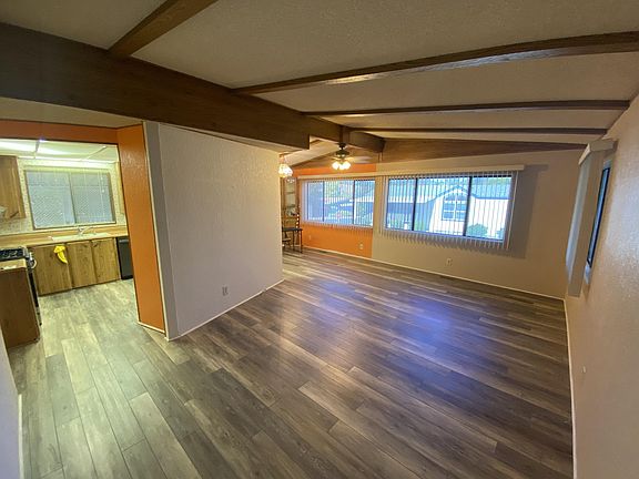 Come check out this 2 Bed 2 Bath Double-Wide Mobile in the quite & peaceful, Redwoods, 55+ Senior Mobile Home Park. Move in ready, and new floors! Enjoy the Enclosed front porch in the morning, with a small fenced area for your dog. The Walk in jetted tub in master bathroom is perfect to unwind In the evening! Space rent includes: Water, Sewer, & Trash.