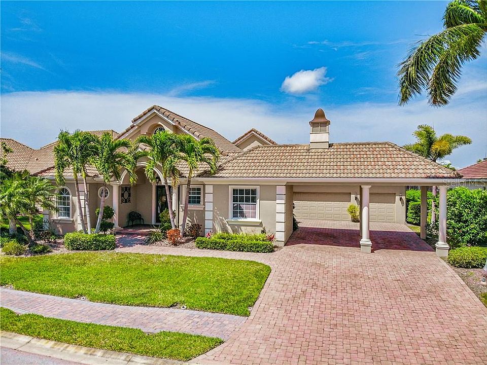 Coastal luxury awaits in this custom canal home at Harbour Walk at The Inlets, Manatee County's premier gated waterfront community. The canal homes at Harbour Walk are situated on freshwater canals with quick access to the Manatee River via the easy-to-use lock system at the mouth of the canal. Then it's just 6 nautical miles to the Gulf of Mexico. All this luxury with LOW HOA fee and NO CDD FEE! This split-floorplan home features 2,605 sq ft of interior living, 4Beds, 3Baths, 3Car Garage, Pool and Boat Dock. Bright and open as you enter the foyer and see directly into the expansive living and dining rooms with high ceilings and crown molding, your eye is immediately drawn through the French doors to the screened pool, lanai and canal. At the center of the home is the gourmet kitchen with 42" cabinets, granite countertops, gas stove, double ovens, two walk-in pantries, stainless appliances, breakfast bar and large eat-in breakfast nook. Off the foyer on the left is the extensive master suite with a generous walk-in closet, coffered ceilings, and French doors leading to the lanai and pool area. The master bath features dual sinks with granite countertops, a soaking tub and tiled walk-in shower. Two of the Guest rooms are located at the front right off the foyer and offer plenty of closet space with custom ceiling fans, and plank ceramic tile. These two bedrooms share the 2nd bath with tub/shower combo. The third Guest room is located at the back of the home and its bathroom does double duty as the pool bath. This bedroom also has a built in Murphy bed that is included in the sale. The architecture of the property positions the spacious triple garage with extra storage set back from the street and is beautifully framed in the front by its porte-cocheres (French for "carriage porches") that provides two spaces of additional covered parking. HOA fee includes Internet and Cable TV, maintenance of common areas and amenities, gated community private road and security. Harbour Walk features playground, waterfront park & fishing piers, tennis courts, kayak & canoe launch, paver sidewalks, and walking trail. Just 3 miles west of I-75, less than one hour drive to St Pete/Tampa/Sarasota airports, world class shopping, three of the top beaches in the nation, extensive dining and entertainment, major sports venues and over a dozen golf courses within a 5 mile radius.