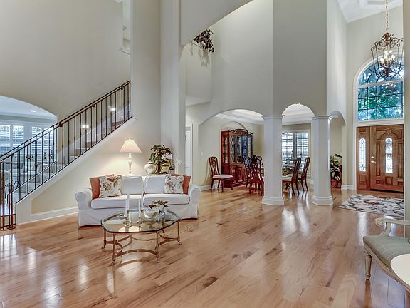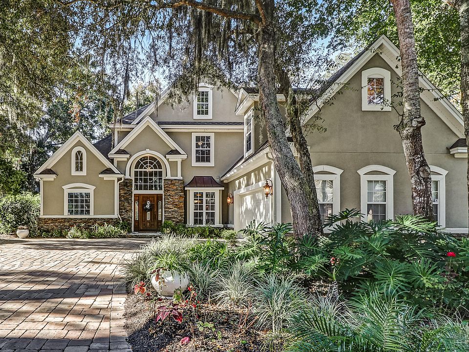 This amazing, Donna Lynne Custom Home is tucked away in the gated Golfside Summer Beach Community. Just minutes from the beautiful white sandy beaches of Amelia Island and Ritz Carlton Resort. Take note of the lush, fully landscaped front yard. As you enter, the sun soaked living area and dining area will greet you! Admire the stunning wall of windows with soaring 19 foot ceilings. Fresh hardwood floors lead you through the Great Room into cozy Family Room with a lovely gas fireplace. Beautifully upgraded kitchen with quartz countertops, custom cabinetry, spacious center isle with breakfast bar and microwave drawer! First floor owners suite is its own private oasis, complete with spa-like suite, an oversized soaking tub, tiled walk-in shower and double vanity. Up the staircase, find 3 nice