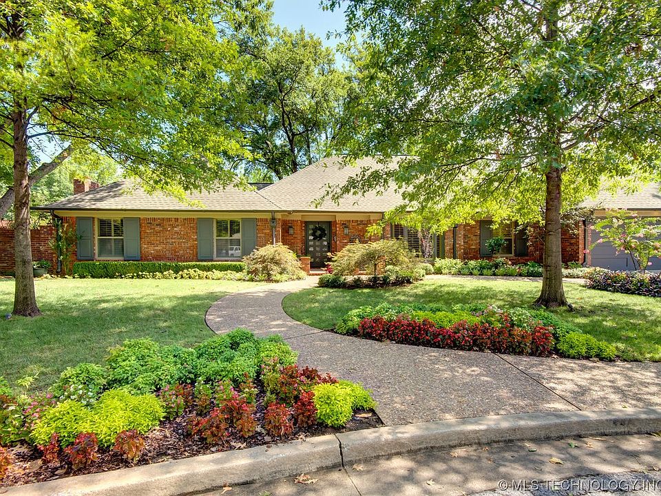 A TIMELESS BEAUTY! This rare one level home perfectly captures the art of living in Midtown. Situated on a cul-de-sac and almost half acre lot for quiet and private living. Stately full brick home that has been meticulously maintained and thoughtfully updated. Offers an abundance of 3 living areas, 3 fireplaces, office, vaulted private primary with adjoining den and quiet terrace. Outstanding outdoor oasis with pool, hot tub, and oversized gas firepit. Charming multiple outdoor dining and sitting areas.