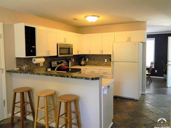 Great curb appeal on this solid two story home located in easy to access SW Lawrence! Over sized walk-in pantry off laundry, newer stainless double oven range, newer built-in microwave, fenced backyard, spacious master suite with walk-in closet and full master bath! Close to near by schools! Must see!