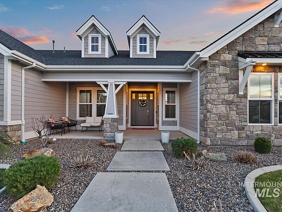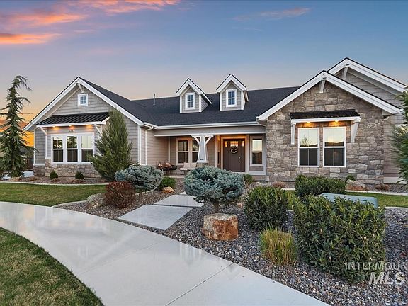 Nestled on a serene cul-de-sac in the prestigious Spurwing Heights community of Meridian, this exquisite single-level Craftsman residence by SunRidge Homes showcases timeless design and thoughtful functionality. The spacious open-concept layout seamlessly connects the family room, dining area, and gourmet kitchen appointed with premium Thermador appliances, an expansive walk-in pantry, dedicated office space, ideal for working from home. Designed for year-round entertaining, the generous covered patio invites you to relax and unwind while taking in the views of the beautifully landscaped yard and tranquil, meandering stream. Each oversized bedroom offers the privacy of its own en-suite bath and walk-in closet, while a well-appointed secondary suite includes a built-in desk and snack bar, perfect for guests or multi-generational living. Crafted with care and finished with distinction, this exceptional home is a rare blend of elegance, comfort, and livability in one of Meridian’s most coveted neighborhoods.