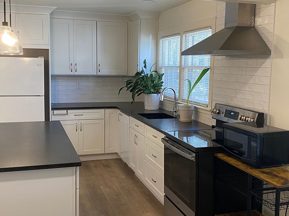 Charming 1950s character home on 1.5 acres, sits on quiet street and has been completely remodeled. Kitchen and bathrooms have all been redesigned for modern living with new cabinetry, tile and granite countertops. Master suite upstairs, 2 bedrooms and full bathroom downstairs all with new floors throughout. Enclosed back porch has been converted to the laundry room. Water is included in rent. Gas, electric and garbage responsibility of tenant. Lawn and bed maintenance is also tenant responsibility.