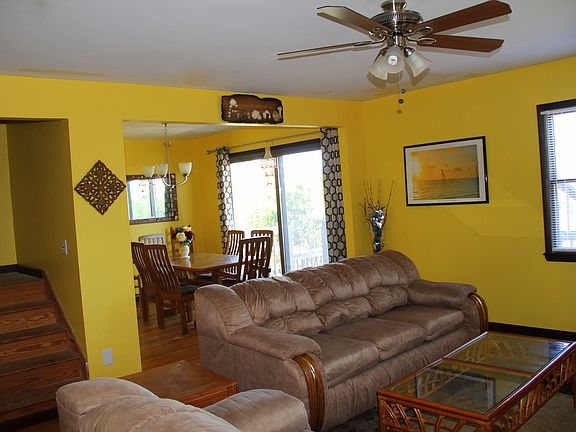 It’s located in secluded wooded acre lot in the beautiful Hatteras Island. Perfect island vacation place to enjoy all aspects of nature - ocean, bay, wildlife, water views and still in midst of the town with all amenities, walking distance from local shopping store, entertainment, eateries, and beach. A freshly renovated two unit house, new in the OBX vacation rental market!! Perfect renting opportunity for a large family get-together. The Main floor has 3 Bedrooms / 2 Bathrooms, very spacious Kitchen with in-kitchen breakfast area and a separate dining room adjacent to Living room in an open setup design. The second floor has a separate unit, connecting through internal stairs and separate entry/exit as well. It is 1 Bedroom/Bathroom unit with full Kitchen and in-kitchen dining area. Lower Unit: The Master Bedroom is very spacious with a large walk-in closet and attached master bathroom. It has a queen bed and a 40” flat screen Smart TV. It is fully renovated, fresh paint and new hardwood floor. The attached bathroom is also renovated, tiled walls and floor, has a wide & deep soaker tub for a relaxing bath. The sliding mirror door separates bedroom and bathroom, opens space and add privacy at the same time. The second bedroom has a queen bed, a spacious closet, it is also renovated, fresh paint and new hardwood floor. The Third bedroom is sure to catch kid’s attention, it has 2 set of bunk beds and a roomy closet, fresh paint and new hardwood floor. The second bathroom is in the hallway, which is also renovated, tiled walls and floor, Multi-Jetted full body shower with sliding glass doors and a shower bench. Our spacious kitchen is freshly painted and equipped with all appliances for a great cooking experience: Electric stove, oven, griddle, microwave, coffeemaker, toaster, blender, dishwasher and full size refrigerator with ice maker. Adjoining to kitchen is laundry room with full size washer and dryer. The outside porch, wraps around on the house in front and canal-side with a spacious lower deck with the water view. You can enjoy sun-rise and sun-set from the porch/deck. Upper unit has a Queen Bed in the Bedroom and A Full Bed and Futon. The unit has its own Flat screen TV. It has a fully furnished Kitchen with full size refrigerator and coffee maker. The Upper Unit also has a full bathroom with soaker bathtub.