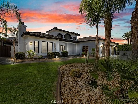 Set your sights on this Mediterranean Contemporary beauty in Haystack area of South Palm Desert! This Pool Home is a true Prize and shows like a Gem! Elegant 4 Bedroom, 3.5 Bath Home is Graced with tasteful updates throughout. As you enter you will notice a blend of modern details while keeping to the Classic Architecture in mind. This Custom Beauty offers a Work from Home Space adjacent to your Entry way and can be utilized as Office Space or an Additional Guest Bedroom Your Guest will be welcomed by a Beautiful Living Room Sitting Area, A Dining Room Perfect for Family or Entertaining, A Chef's New Kitchen that includes Soft Close Cabinets, New Appliances, a Professional Gas Stove, Quartz Countertops, Custom Tile and Farmhouse Sink. The Chefs Kitchen opens up to your expansive Custom Island, Family Room and Dining Room which makes it perfect for Gatherings and Evenings with Family and Friends. Your view from the Family Room and Chefs Kitchen will be Breathtaking with an Amazing Expansive Bifold Door that opens to your Pool and Courtyard. Seller took pride in every detail offering New Custom Flooring throughout, Upgraded Lighting, Wine Beverage Bar, and Dual Fireplaces, the list is endless. The primary en-suite bedroom is graced with a soaking tub, glass shower doors, Custom Designer Details, and Walk In Closet. Each Bedroom has been tastefully done to give a feel of Home. Each bath has been remodeled and shows beautifully! Get Ready to enjoy the fabulous California Weather with this Amazing Oasis offering outdoor Shower, Bar, and Sitting Areas. Enjoy Dinner, Entertain, and Relax with this pristine Entertaining backyard!. Desert Scape plantings are beautifully complimented with the lush lawn on this corner lot and well manicured mature trees. Your 3 Car Garage is perfect for Parking and Storage. This Beauty is Minutes by car from shopping and dining of El Paseo Drive, The Living Desert, plus Scenic Ironwood community park. Every space in this home is utilized to offer you the most Beautiful Living Experience. We welcome you to take a private tour, call for details!