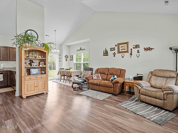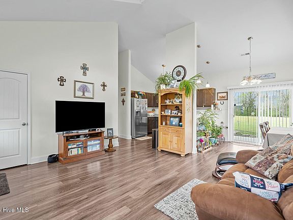 Charming 3 bedroom, 2 bathroom home tucked away in Willard, NC - This home was built in 2020 and has been meticulously maintained by one owner since. Step inside to an open floor plan with vaulted ceilings that seamlessly connects the living, dining, and kitchen areas, creating a warm and welcoming atmosphere for gatherings and everyday living. This kitchen features granite countertops, SS appliances, brushed nickel fixtures and decorative lighting. LVP flooring spans throughout the main living area and down the hallway leading to 3 spacious bedrooms. All rooms are outfitted with soft carpet, two panel round top doors, and ample closet space. The primary bedroom with en-suite bathroom has a double vanity and tile floors, leading into an expansive walk-in closet. Large windows throughout the home offer an abundance of natural light, and on the right and rear of the home, you'll find only horse pastures, allowing wooded views, privacy and wide open space. Enjoy the tranquility of the outdoors on this just shy of 1 acre lot, equipped with a covered back porch, and a wide open backyard perfect for gardening, entertaining, or relaxation. No HOA! Schedule your private showing today!
