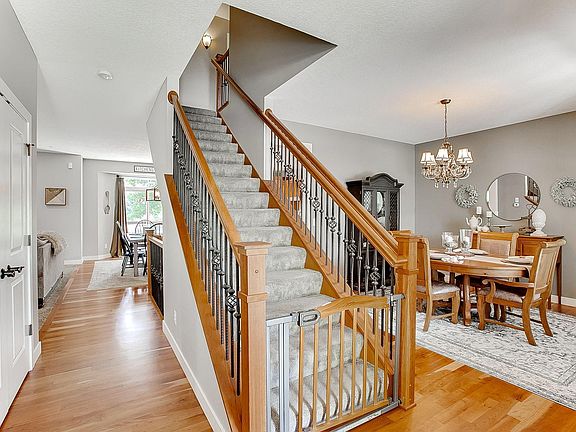 Custom built and meticulously maintained 2-story located in the highly desired Highlands of St Michael! Community pool and park, award winning schools and conveniently located near trails, shopping and restaurants. Easy access to the freeway also! This is a well thought out plan with 9’ main level ceilings, main floor office, formal dining, beautiful fireplaces both in the living and family rooms, 4 bedrooms on upper level with a vaulted primary suite with 2 large walk-in closets and a pass-through laundry room. The lower level has been designed featuring a large entertainment area, family room with wet bar and a 5th bedroom with a pass-through bath. The oversized 3-car garage is insulated, heated and paneled throughout. This is a super cool feature! The exterior has a new roof, new LP Smart siding, a large front porch, gorgeous landscaping and boulder walls and a cedar deck overlooking a wetland area giving this property some great views and privacy.
