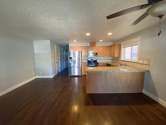 Newly renovated 3 bedroom home in the beautiful Portsmouth neighborhood just a few blocks from Columbia Park. All new stainless steel appliances. Walking distance to food carts, groceries and just minutes from beautiful St. Johns. This 3 story home has an attached garage, new floors and updated kitchen and bathrooms. Large bedrooms, plenty of closet space. Trash and recycling included. Gas, electric, water and sewer are not included. Private driveway and entrance in the rear of the house. No smoking and pets over 30 lbs will be considered on a case by case basis. An application fee of $55 is required for a credit and background check.