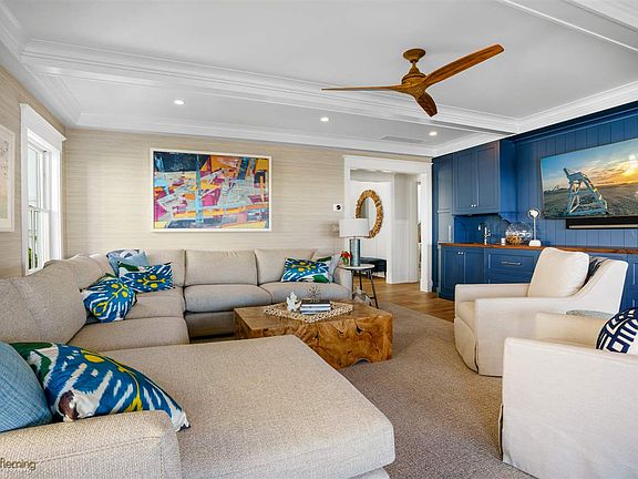 Welcome to 4718 Ocean Drive. This brand new custom BAYFRONT home is designed by Mark Asher and built by Winfield Developers. You will marvel at the quality of workmanship and the attention to detail in every aspect of this grand estate. At over 5,300 sq ft this three story custom home offers 6 bedrooms, 5 baths and 3 powder rooms. It is sure to provide enough room for all generations of your family. On the first floor you have two bedrooms with a jack and jill bath, one which offers bay views. The downstairs family room has a stunning custom wall of built-ins complete with 4 Sub Zero fridge drawers. This room opens up to the covered porch which has automatic hurricane shutters that are a must when living on the bay. There is a powder room with outdoor access from the lower deck. The backyard opens up to your own private oasis with 60 feet of bay frontage. A marble patio surrounds the 28'x14' pool with a sun shelf as well as a fully loaded cabana. A new bulkhead, ramp and dock have been installed to add endless options such as fishing, kayaking, paddle boarding, boating, and wave runners. As you make your way upstairs you will be blown away by the grandeur of the expansive great room with cathedral ceilings. The 8 inch wide white oak hardwood floors blend perfectly into the oversized open kitchen. The kitchen is fitted with custom cabinets with a built in Sub Zero refrigerator as well as a 48 inch Wolf range and a beautiful quartz counter top that pulls it all together. There are three more bedrooms on this level, all with their own custom tiled en suite bathrooms. Two of the bedrooms have soaring 20ft ceilings and there is bunk room with custom build-ins. On the 3rd level you have the showpiece master suite consisting of one of the most unique master baths in Avalon as well as an incredible walk-in closet. The bedroom has a built in gas fireplace as well as a private deck with the best bay views in the house. This is sure to be a grand estate that you and your family will enjoy for generations to come. The home is sold beautifully furnished by Ford Design Studio. Don't miss this chance to own one of the most spectacular bayfront homes in this town!