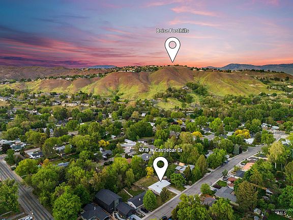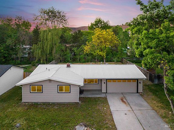 Discover your ideal home on nearly a quarter acre in sought after Northwest Boise. Perfectly situated between Catalpa Park and the scenic Boise Foothills, this home is tucked away on a tranquil street with mature trees. Completely renovated in 2021, this charming abode features new flooring, windows, an updated kitchen, updated bathrooms, new fixtures, a newer HVAC system, and a unique and efficient metal roof. Enjoy cozy evenings by the fireplace or step outside into the blank canvas of the expansive backyard. With stunning views of the foothills and private stream in the backyard, this property offers endless possibilities for outdoor enjoyment.