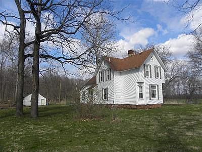 ACCEPTED OFFER SUBMITTED FOR APPROVAL. This huge home has an enclosed porch for dropping shoes and coats. Ample kitchen has plenty of room for a table and chairs by the sliders that lead to the private deck and backyard. A half bath connects house through kitchen and main floor bedroom. A formal dining room with built in hutch could be restored to the beauty of years gone by. The two living rooms or parlors, have much of the original woodwork in tact. Upstairs are wonderfully large bedrooms too and a full bath. The furnace is in good working order and there is a wood stove in the basement to help on heating bills but it needs a chimney. The exterior, roof and windows are in good shape. The well and septic are less than 20 years old and the septic has been pumped every few years. There is a 3 car garage plus an old barn all on five fabulous acres near several prime fishing and recreational lakes. Does need some work but at this price, you might expect that. Short Sale