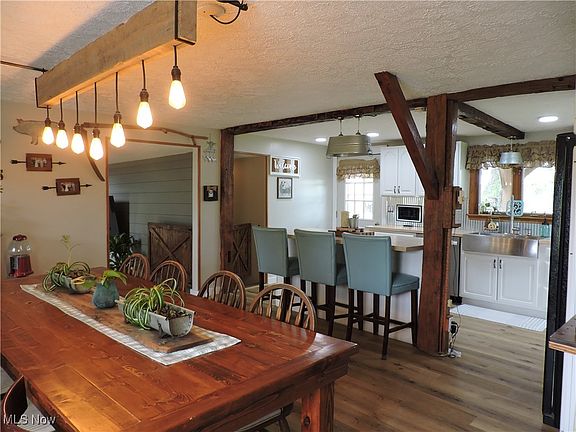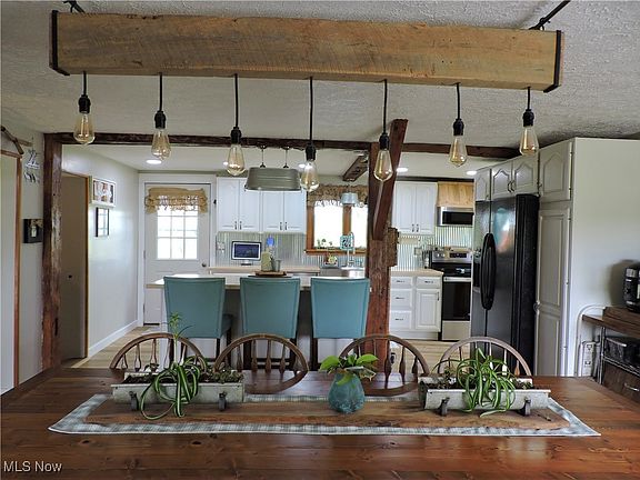 Welcome to this beautifully crafted 3-bedroom, 2 full bath farmhouse, nestled on just under 6 serene acres complete with a stocked pond—perfect for peaceful country living. This century home has been thoughtfully built by a master craftsman, showcasing timeless post and beam construction in the original portion of the house. Step inside to an open-concept layout featuring an updated rustic-country kitchen that flows seamlessly into the spacious dining area—ideal for entertaining or enjoying cozy family meals. The stunning two-story Great Room is the heart of the home, boasting vaulted ceilings, exposed beams, and a wood-burning stove that adds warmth and character. The main floor also includes a convenient laundry room and a full bath with 2 person shower. Upstairs, a loft overlooks the Great Room and leads to the expansive master suite with vaulted ceilings and a walk-in closet. Two additional bedrooms and a second full bath provide plenty of space for family or guests. Outside, a 40x28 two-story barn offers endless possibilities. It features a solid concrete floor, a wood-burning stove for year-round use, and an enclosed lean-to for additional storage or workspace. A second 56x32 outbuilding with gravel floors and horse stalls offers great potential for equestrian use or livestock. Whether you're fishing in the pond, relaxing by the fire, or tending to animals, this unique property offers the perfect balance of charm, space, and utility—ready for your country lifestyle.