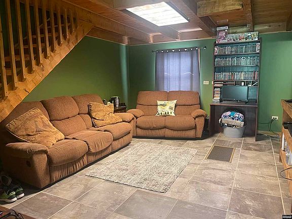 Gorgeous Log Cabin - 3 acres. Country Setting. Cozy Home Main floor - full bath, Living Room, Kitchen. Upstairs - 1 Bedroom, half bath. Finished basement with outside entrance. Includes Living area and full bath. Very unique home. Front Porch. Circle Driveway. A Must See!!